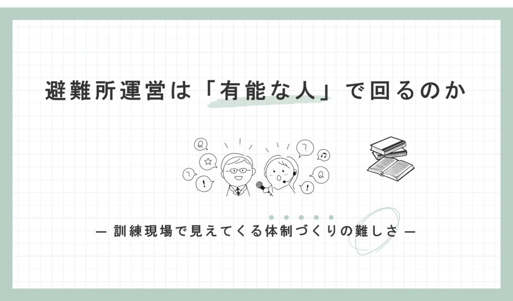 「訓練に来ない人は、動けない」──そう決めつける前に防災教育N-HOPS避難所共助避難所の開設避難所運営ガイドライン避難所運営マニュアル避難所開設訓練NHOPS2025年07月14日(更新:2025年07月14日)淺野 智雄