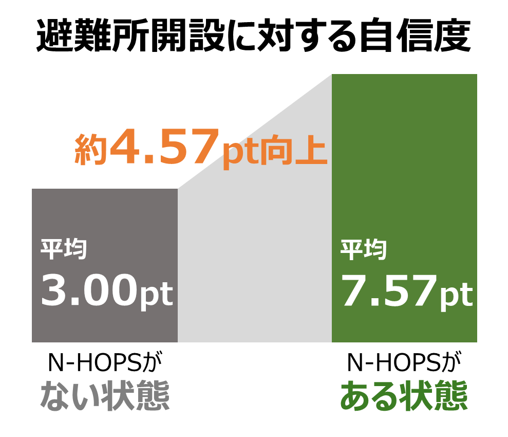 その結果、開設作業時間が約54%短縮され、避難所開設に対する自信度も大きく向上しました。