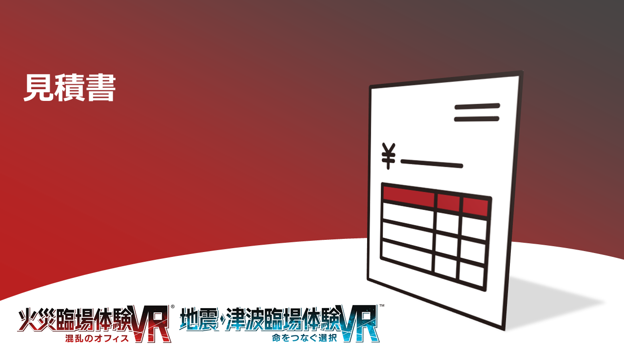 「火災臨場体験VR」「地震・津波臨場体験VR」の見積書はこちらからダウンロードしてお使いください。